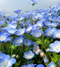 婴儿蓝眼(粉蝶花)天蓝色五瓣花,中心带白斑,春季开花,匍匐生长,适合地被或花坛镶边。其他如翠雀花(淡蓝或紫蓝)、铁线莲(部分品种)、蓝花丹等也属于淡蓝色系花卉。若需更完整列表,可参考相关园艺资源。