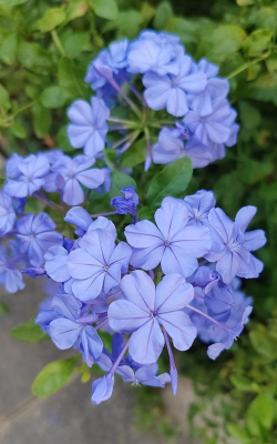 蓝雪花花朵呈淡蓝色,花期7-9月,耐高温高湿,抗病性强,适合盆栽或庭院种植,是夏季清新花卉的代表。