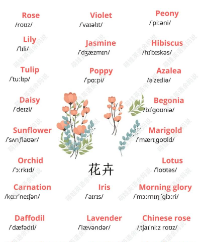 以下是一些常见花卉的英文名称,按类别整理如下: