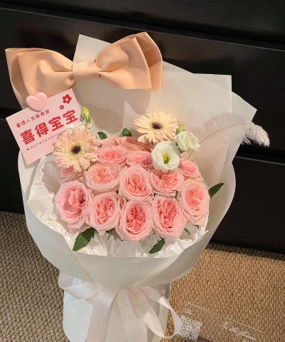 满天星花型较小、浅色、花姿蓬松具立体感,气质高雅清秀,给人以朦胧感,花语是清纯、关怀、思恋、配角、真爱以及纯洁的心灵,送予产妇可使其情绪得到放松。