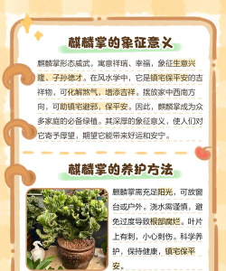 养护时需控制浇水和施肥,防止烂根或“返祖”现象(茎干退化为普通柱状)。综合来看,麒麟掌兼具实用、美学和文化价值,是一种适合家庭和办公环境的多功能植物。