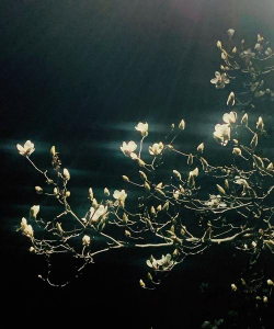 夜香木兰(夜百合)花朵形似百合,纯白色,仅在夜晚绽放,日出前闭合,香气清雅。