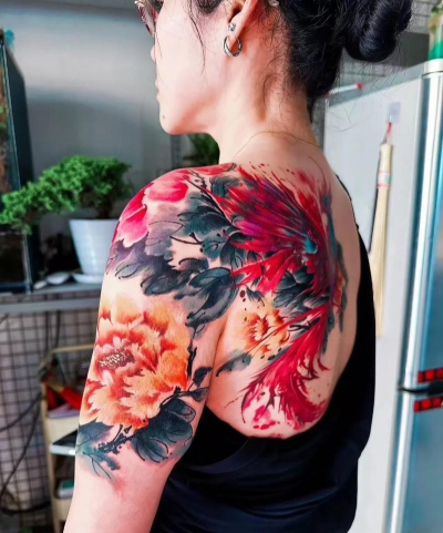 特点:中国风纹身的经典选择。