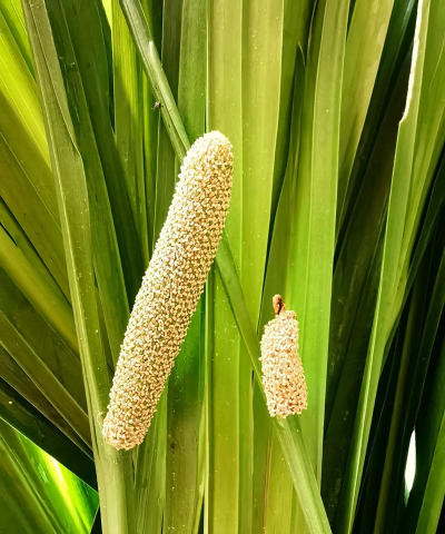 肉穗花序 :花朵为黄绿色,花被片6片,雄蕊6枚,子房下位,花柱不明显,整体呈漏斗状或圆柱形。