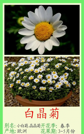 白晶菊又名小白菊,为一、二年生草本花卉。喜温暖湿润和阳光充足的环境。较耐寒,耐半阴,适宜生长在疏松肥沃排水性好的壤土中。