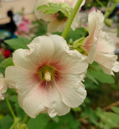 蜀葵因花期与端午节重合被称为“端午花”,花色丰富(红、橙、黄等),花型多样,象征避邪驱毒。古代常与菖蒲、石榴等搭配使用。