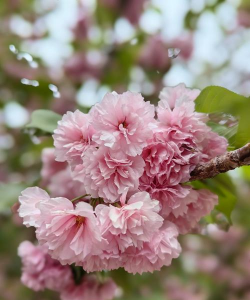 中晚樱:关山、松月、普贤象等重瓣品种(4月中旬至5月),花团锦簇如云霞。