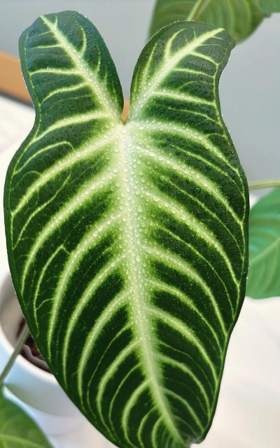 叶片因基因变异呈现白色与绿色交错的斑纹,稀有且高雅,适合作为高端观叶植物。