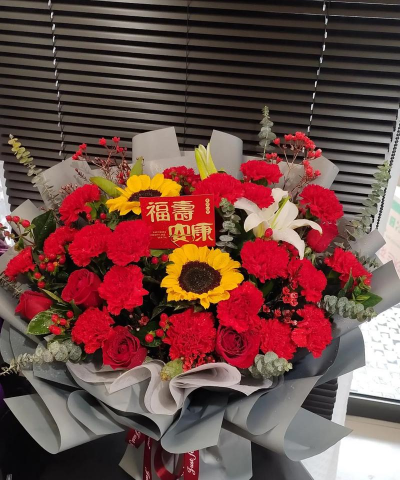 象征富贵繁荣,花型硕大,适合喜庆场合表达对寿星生活的美好祝愿。