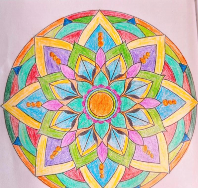 曼陀罗禅绕画:以重复的几何花纹和对称构图为主,绘画过程类似冥想,工具包括针管笔、彩铅等,强调有序创作对心理压力的舒缓作用。