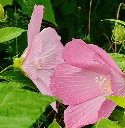 蜀葵花秋葵与蜀葵同属锦葵科,花朵形态相似,尤其是花瓣的黄色和基部紫色晕染的特征。但蜀葵的花序成串开放,色彩更丰富(红、粉、白、紫等),而秋葵花多为单生,花瓣五裂,中心有深色斑点。