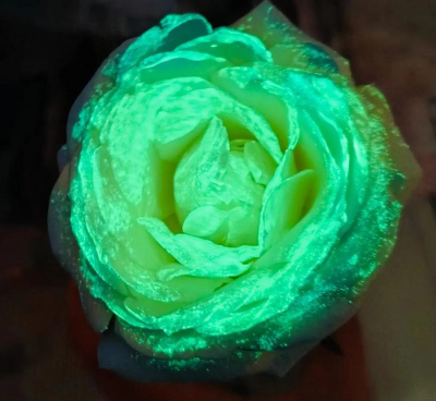 中国农业专家开发的荧光促进剂,喷洒后使普通花卉(如玫瑰、兰花)在黑暗中发光,颜色包括淡蓝、紫红等。
