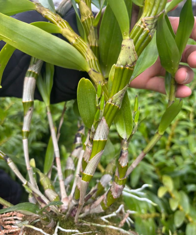 尺寸:长度通常为10-60厘米,粗度可达1.3厘米,部分品种(如鼓槌石斛)茎呈纺锤形,中部粗壮(1.5-5厘米),具2-5节间。
