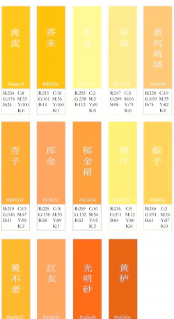 自然与生活色调:柠檬黄、金黄、琥珀黄、芥末黄、麦秆黄、蛋黄/鸭蛋黄。