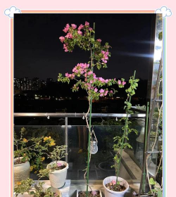 简易花架:适合盆栽或小株三角梅,可用小棍子、竹竿或铁丝绑成网格状,固定在花盆中,引导枝条向上攀爬。