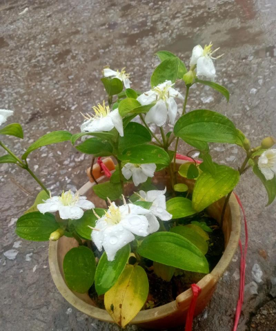 白花野牡丹属于观赏性植物,适合孤植也适合群植,人们常将它作为观赏树种种植在公园或道路旁。白花野牡丹喜欢在温暖、潮湿的环境中生长,我国南方地区多有种植,它对水分的需求量较高,种植时要及时给植株浇水。