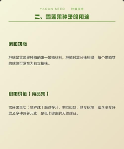 种植雪莲果需注意选种、土壤、种植方法及后期管理,具体步骤如下: