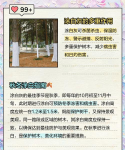 蔷薇科树木(如桃树、梅树):冬季刷白可防止虫卵在树皮裂缝中越冬,并减少温差导致的冻裂。