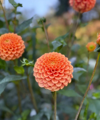 花型多样,包括单瓣、球型、牡丹型等,花色丰富(红、粉、黄、紫等),花期6-12月。