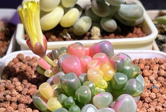 栽种五十铃玉也可以用一些排水良好的介质和一个比较浅的容器,它的根系比较浅,不要选择一些太深的花盆。