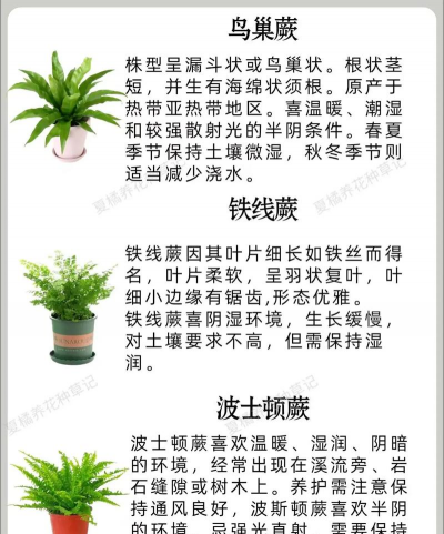 铁线蕨:叶片纤细如铁丝,喜阴湿环境,常用于室内绿化。