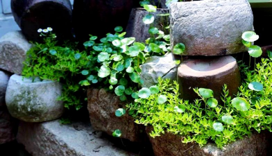 适合半水半土或纯水培,易爆盆且生长迅速,搭配古朴石槽可提升自然感。