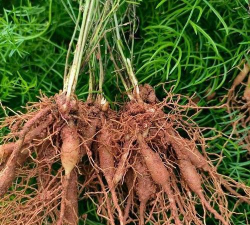 移栽标准幼苗培育1-2年,株高30-50cm、具3-4个根块时可定植,行距50cm×40cm,浅栽避免烂根。