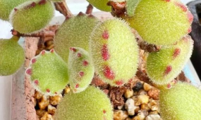 熊童子长到一定高度后,需要给它摘心打顶。通常在15厘米高的时候,就可以将它的顶芽剪除了。去除顶端优势后,植株的侧枝生长速度会更快,而且也能控制它的大小,不让它长得太高,方便日常打理。