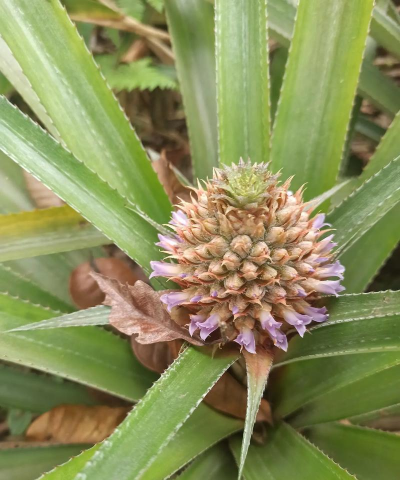 特征 :花朵密集排列成圆柱状,形似菠萝顶部,花瓣和花萼成熟后硬化成为菠萝外皮,花轴肉质化形成果实。