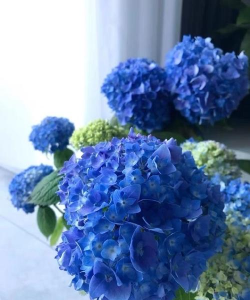 蓝色花朵清新脱俗,常用于新年装饰,寓意纯洁与美好。