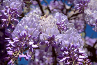紫藤攀援藤本植物,初夏开成串紫花,适合庭院遮荫或盆景造型。