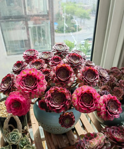 黑法师:叶片紫黑色,光照充足时颜色更深,花语为“神秘与庄严”。