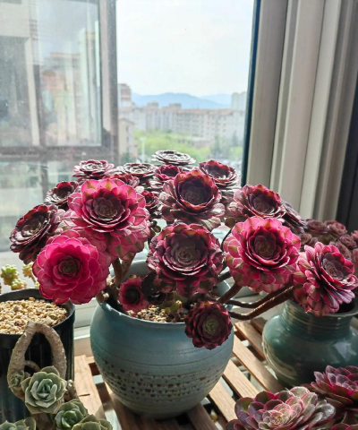 “法师”通常指的是多肉植物中的法师系列(Aeonium属),属于景天科莲花掌属的多肉品种。这类植物因其株型整齐、叶片呈莲座状排列,形态庄严神秘而得名“法师”。以下是关于“法师”花的详细分类和特点: