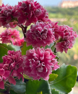 特点:花朵直径3厘米,重瓣玫红色或紫红色,花瓣层数多如玫瑰,喜庆艳丽。自然花期秋至春末,温室栽培可全年开花。