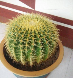 球体:金琥球茎呈深绿色球形,单生或成丛生长,成年植株直径可达80厘米以上,高度可达1米。球体表面有21-37条棱脊,棱沟宽而深,刺座大且密布。