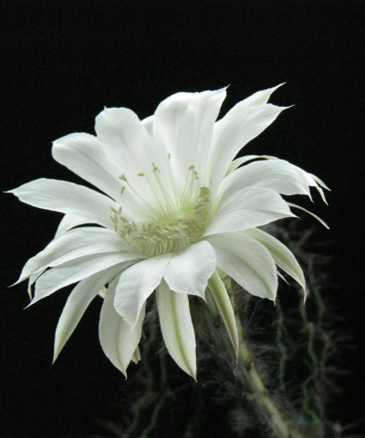 形态:昙花植株高2—6米,老茎圆柱状且木质化,分枝多呈扁平叶状,边缘波状或具深圆齿。花朵单生于枝侧,漏斗状,直径10—12厘米,花瓣洁白,芳香浓郁,夜间开放仅3—4小时即凋谢,故有“昙花一现”之说。