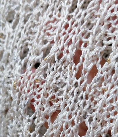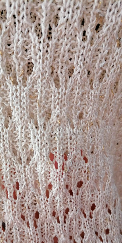 设计:以六边形花朵单元花拼接而成,圆领长袖短款,通过钩针工艺形成几何纹理与镂空效果,花朵细节柔美复古。