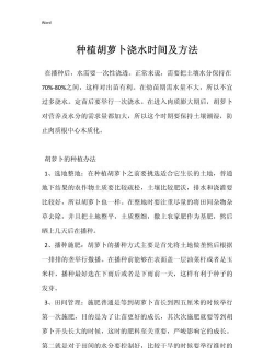 胡萝卜适合生长在较为湿润的环境中,所以在栽种后可以向土壤中浇灌矿物质含量较为丰富的河水或者天然水,浸湿全部的土壤,并且在浇水时需要注意浇水次数,在播种后只需要浇一次水,等待种子发芽后才能再次浇水。
