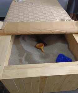 容器与铺设:沙床通常建在塑料托盘、木箱或砖砌池中,深度15-20cm。底层铺2cm碎石或陶粒作为排水层,上层铺8-10cm湿润河沙(湿度以手握成团、松手即散为宜)。