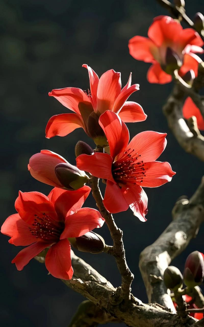 特点:火红色花朵硕大,树形高大,被誉为“英雄树”,是城市的象征。盛开时如火炬般耀眼,常见于市区主干道及自然山野。
