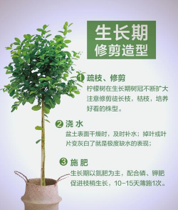 春秋两季有雨水的日子修枝是最佳时期;盆栽尽量不要长高,可以将其树形修圆,粗枝留下,弱枝和病枝剪除,这样可以从根本上解决只长叶不结果的问题,且在成熟后柠檬盆栽要及时的采取修剪并加以支架防护果实。