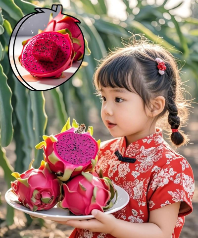 火龙树的果实(火龙果)是其最具辨识度的部分。果实呈椭圆形或卵圆形,外皮覆盖绿色/紫红色鳞片(类似蛟龙外鳞,故得名“火龙果”),果皮厚实;果肉分白肉、红肉两种(部分品种为黄肉),内部嵌满密密麻麻的黑色小籽(类似芝麻),果肉口感清甜多汁(红肉品种更甜)。果实悬垂于茎枝下方,宛如绿藤上的“彩色灯笼”,视觉效果极具冲击力。