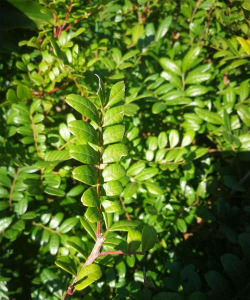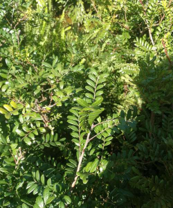 叶片:偶数羽状复叶,小叶4-9对,革质,长圆形或倒卵状长圆形,先端微缺且具芒刺状尖头,全缘略反卷。