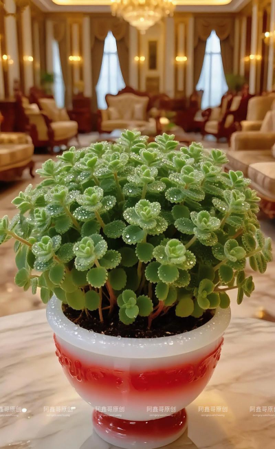 外观:全株密被白色细绒毛,茎细瘦且多分枝,常呈匍匐状生长。叶片肉质肥厚,卵圆形或倒卵形,边缘有钝锯齿,交互对生,触碰后会散发浓郁的苹果香味。