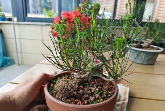 将球果放在阳光下曝晒,每天翻动数次,使果鳞开裂,种子脱出,再经风选净种后即可收藏。用高锰酸钾溶液浸泡2小时消毒,并在温水里浸种,第二天将种子放到湿布上催芽。黑松育苗地应选择土层深厚、土壤肥沃、排水良好、灌溉方便的沙壤土或壤土,土壤酸碱度呈微酸性或中性。把种子撒到土壤内,覆盖1-2cm的土壤,轻压,1-2周就会长出幼苗。