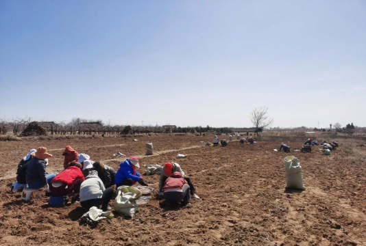 播种规格:行距30-45厘米,株距15厘米,播种深度5-7厘米,每穴1-2块茎,覆土压实后浇透水。