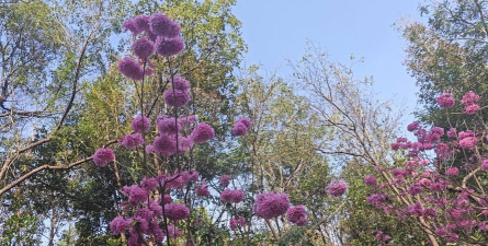 紫荆花:春季开放,紫红色花朵密集生长于枝干上,原产南非。