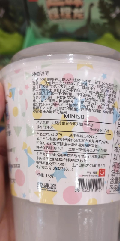 名创优品的“快乐种植”产品名创优品推出史努比主题种植套装,简化种植流程为三步:倒土、撒种、浇水晒太阳,适合家庭园艺体验。
