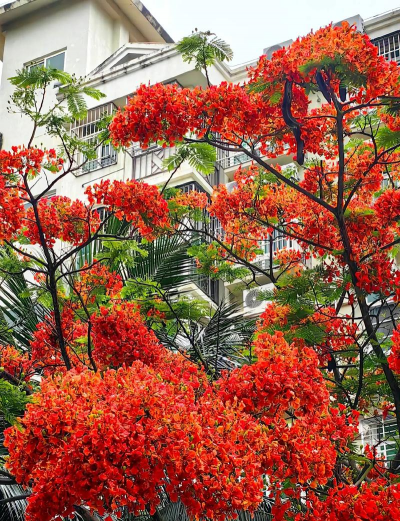 花期集中:通常在5-9月盛开(华南地区5-7月),花红叶绿,景观壮美,常与毕业季关联,花语为“离别、思念与火热青春”。