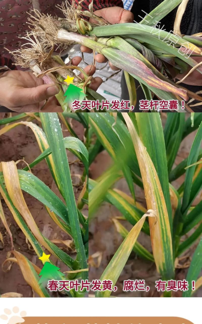 防治方法:施用充分腐熟的有机肥作基肥,且蒜种与肥料应适当隔开,切不可将蒜种贴在肥料上种植.根蛆危害严重的地方,可用90%晶体敌百虫750克对水50公斤溶解,再泼洒在750公斤粪土上,拌和后施下.同时遭受根蛆、蛴螬危害时,可用90%晶体敌百虫1000倍液喷洒基部.如发生葱蓟马、潜叶绳,可用杀虫剂喷雾防治。